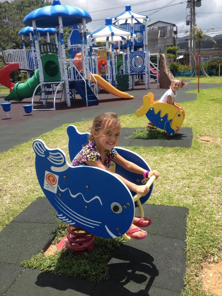 Zoe attends Tedako Childhood Development Center (CDC) here at OIST. This is a full-time daycare and preschool setting for employees' children. It takes us about 3 minutes to walk from our apartment to CDC and because it serves as a daycare, there is no pressure to be there at a precise time. The morning circle is at 9:15, and we always manage to be there by then. Zoe's class, Kugani, has 4-6 year olds, which is a great preparation for the Montessori education she will have back in Durham. The classroom is bilingual. One teacher, Misaki-sensei, is Japanese and primarily speaks Japanese to the students, although she is fluent in English. Misaki-sensei is the one there in the morning when we arrive; "Ohaiyo gozaimasu, Zoe!" (Good morning, Zoe!) Her other teacher, Miss Charlece is American and speaks only English to the students. The students are primarily Japanese, although there are some European students, and one other American girl who has quickly become Zoe's BFF. This friend has big brown eyes and brown hair too so they make quite a team.